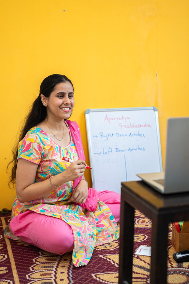 Apoorva Lele Divekar is a Yoga Therapist, Certified Pre & Postnatal Yoga Instructor, and Garbha Sanskar Facilitator. Apoorva Lele Divekar is a Yoga Therapist, Certified Pre & Postnatal Yoga Instructor, and Garbha Sanskar Facilitator. She is YCB Certified (Ministry of AYUSH) and specializes in women’s health at every stage of life.